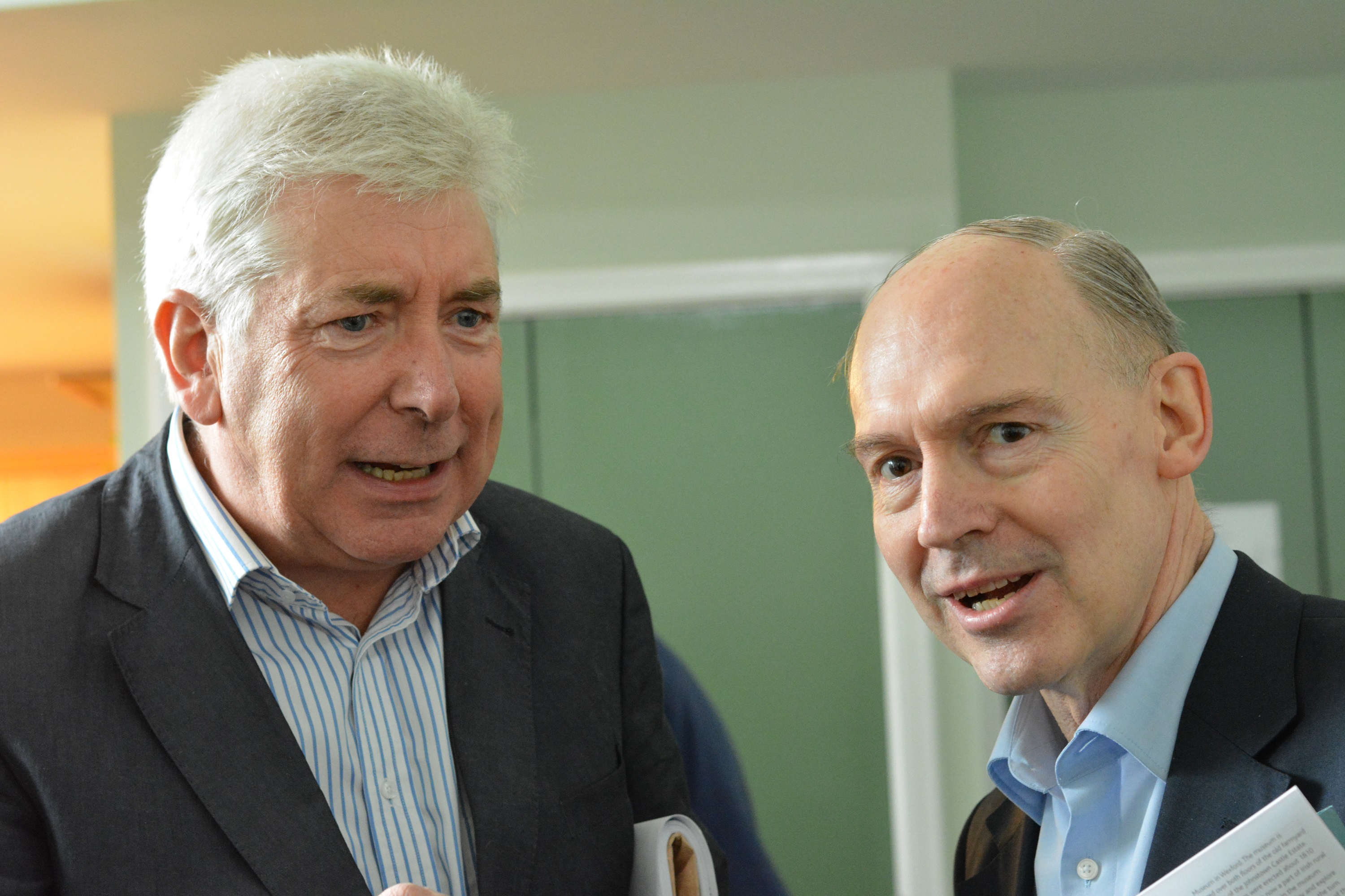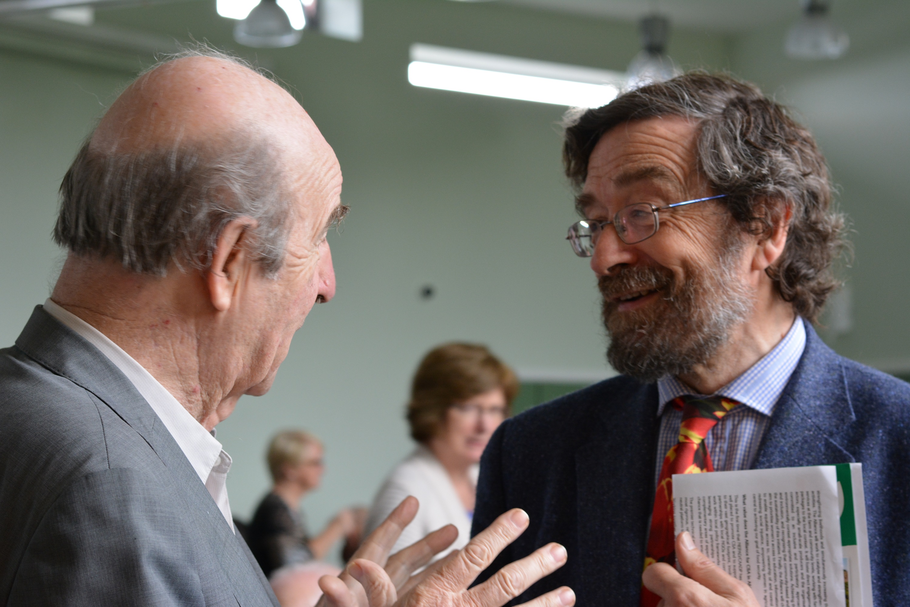Minister for Communications, Energy and Natural Resources, Alex White speaking to Dr Dermot Lane, retired president of Mater Dei and organiser of the National Conference on Climate Change and the Environment at the Church of the Ascension in Balally.