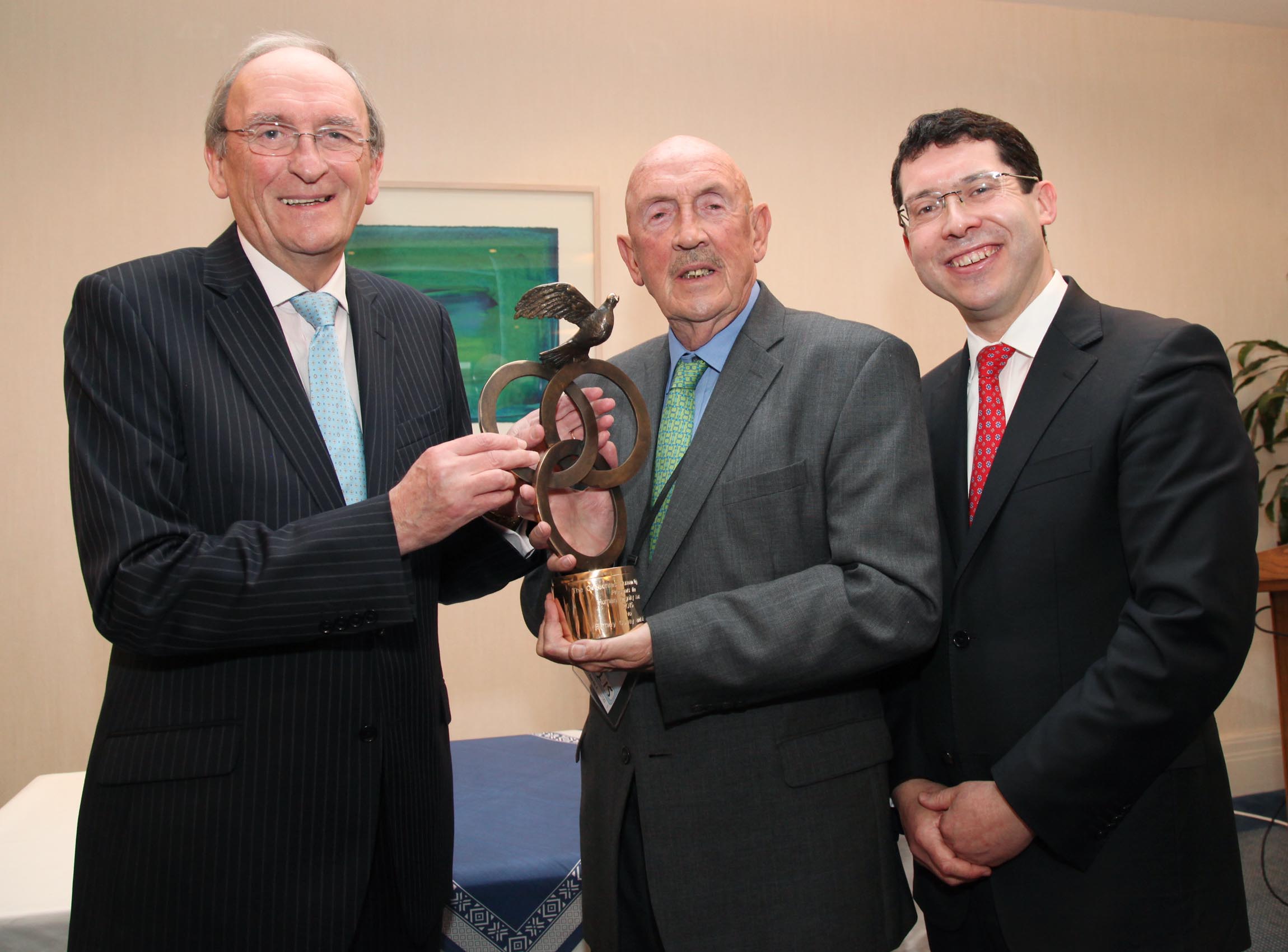 Pic shows Barney Curley recipient of the Oireachtas Human Life, Human Rights and Human Dignity Award 2015 receiving his award from Ceann Comhairle Mr Sean Barrett TD with Senator Ronan Mullen. Pic John Mc Elroy.