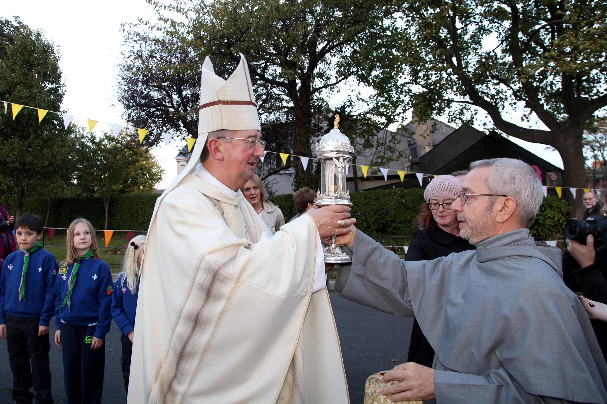Fr Mario Conte, OFM Conv, presents Archbishop Diarmuid Martin of Dublin with one of two relics of St Anthony of Padua at the opening of the visit of the relics to Ireland.