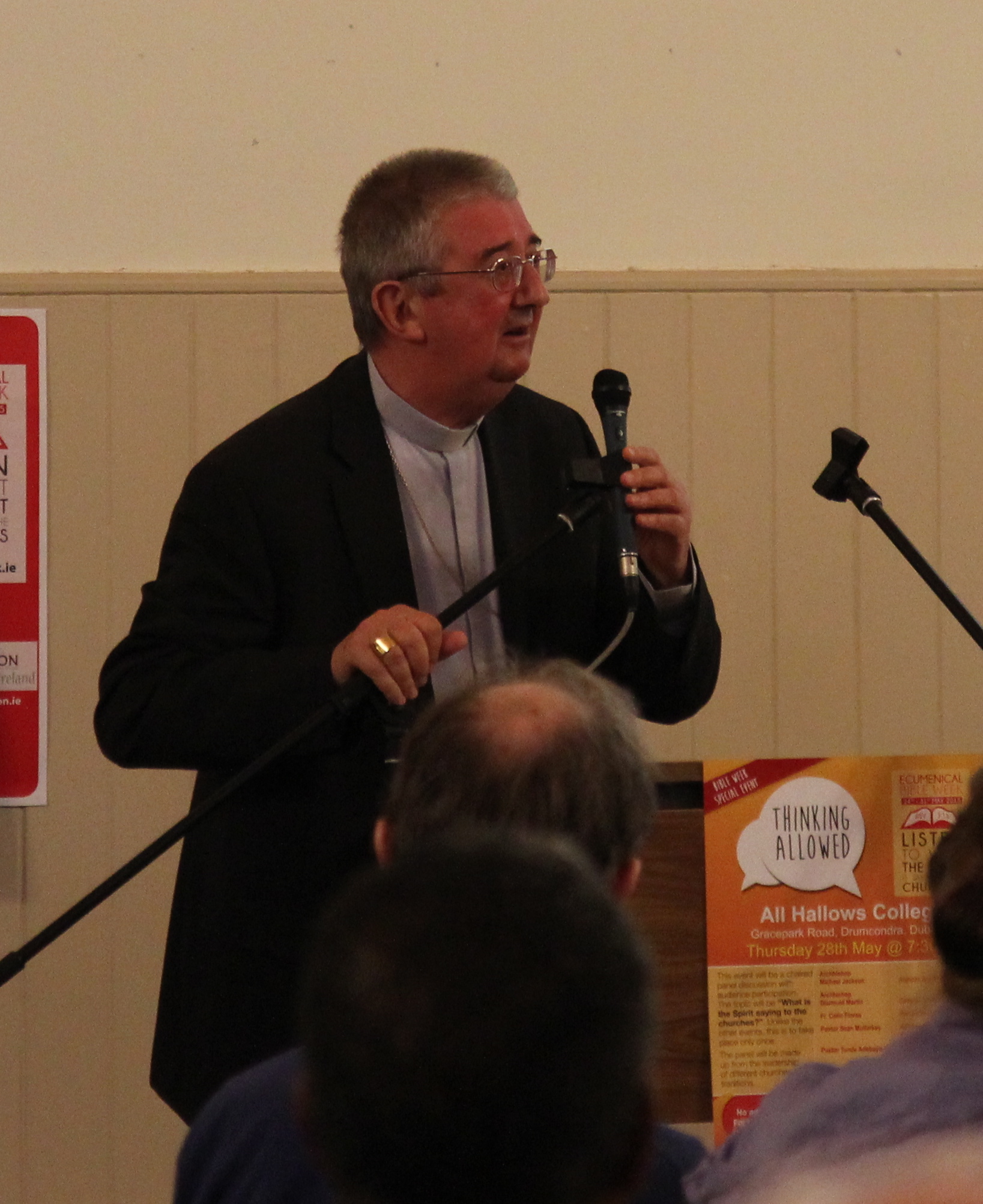 Church of Ireland Primate of Ireland, Archbishop Michael Jackson, addressing the ‘Thinking Allowed’ event in All Hallows. Pic: Lynn Glanville